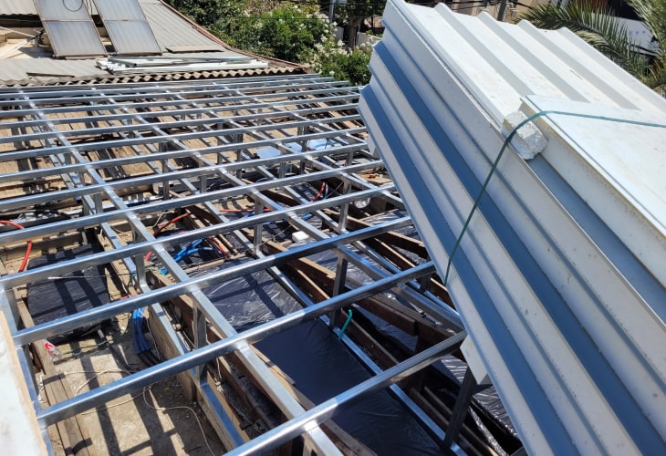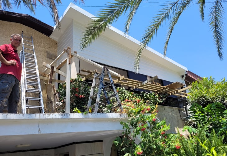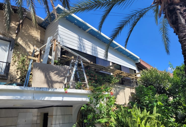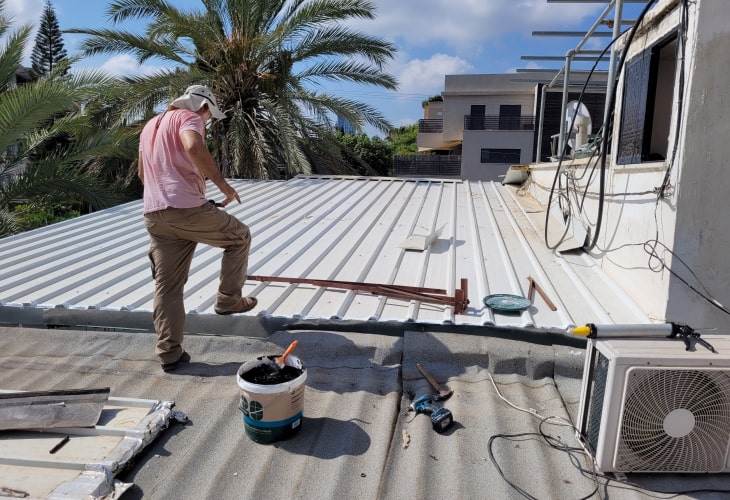 ביית גג פנל בהוד השרון. תחילת עבודה הכנת קונסטרוקציה ברזל מגולוון חדשה הכנת תעלה לניקוז מים התקנת פנל עובי 10 ס"מ סגירות מהצדדים הרכבת לוחות בטון דמויי עץ על הקיר החיצוני וצביעת הקיר בגוון בהיר תוכלו להתרשם מתמונה בתחילת הפרויקט והעבודה שנעשתה אחרי.