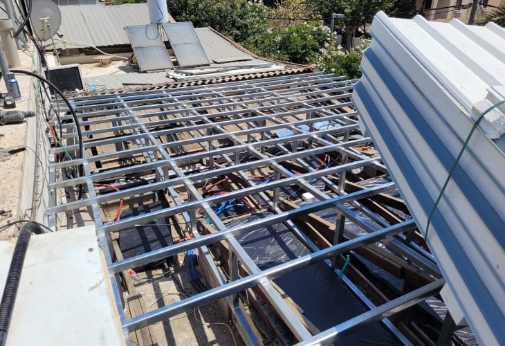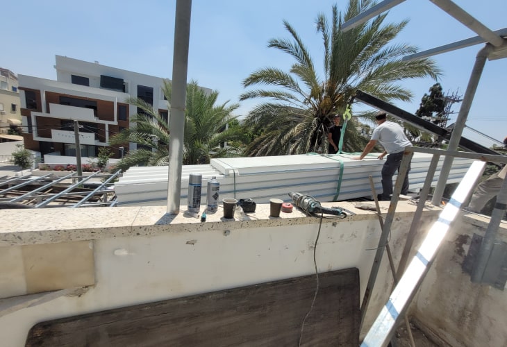 התקנת גג פנל בנתניה. תחילת העבודה בניית קונסטרוקציה מפרופיל ברזל מגולוון כהכנה להתקנת פנל בגג כולל סגירות בצדדים ושיפוע לצד אחד שמתחבר לתעלה. תוכלו להתרשם מתמונות מהפרויקט והעבודה שנעשתה.