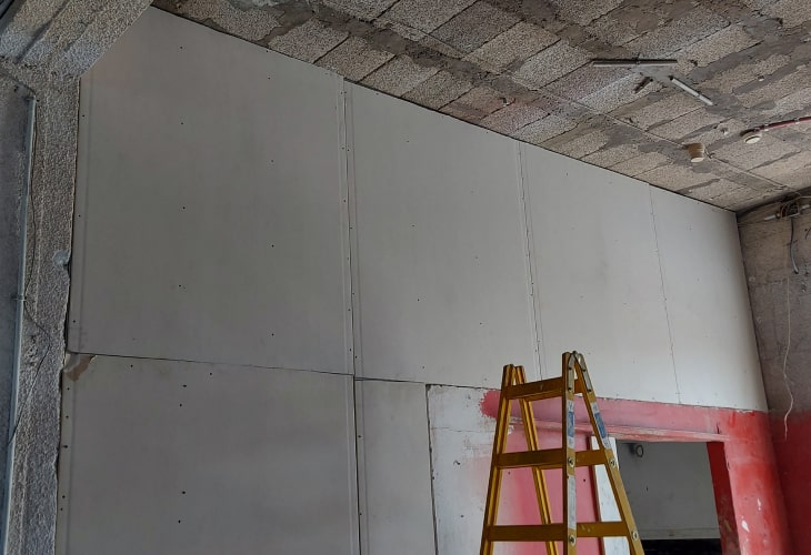 עבודת גבס בהוד השרון. סגירת קיר גבס  למטרת סגירת גלריה. תוכלו להתרשם מתמונה בתחילת הפרויקט והעבודה שנעשתה אחרי.