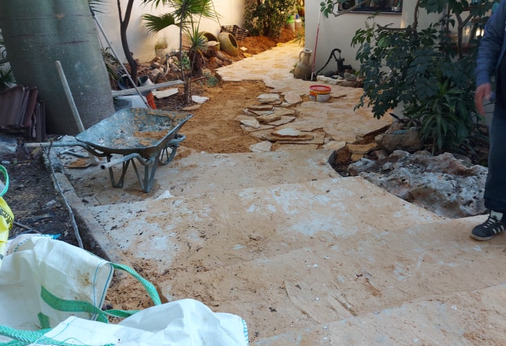 עבודת ריצוף אבן חוץ בתחילת עבודת הריצוף הוכן משטח בסיס חול והצדדים נתחמו לאחר מכן רוצפה החצר בריצוף אבן ובין האבנים נעשתה אטימה. תוכלו להתרשם מתמונה בתחילת הפרויקט והעבודה שנעשתה אחרי.
