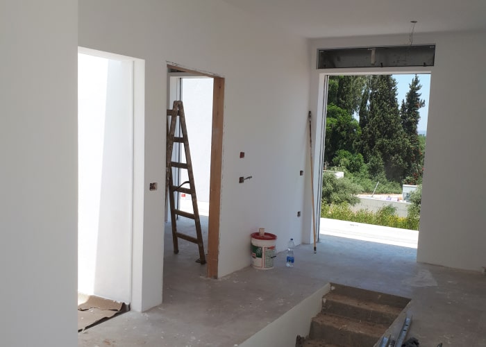 צביעת ויל בהוד השרון מאת המשפצים. בתחילת העבודה הכנו את הקירות לצבע מרחנו חומר מקשר. וצבענו צביעה ראשונית של הווילה. תוכלו להתרשם מתמונה בתחילת הפרויקט והעבודה שנעשתה אחרי.